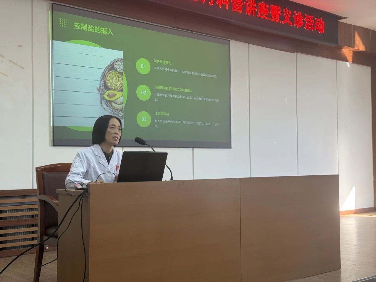临床营养科杨阳主任医师的《老年人营养与膳食》讲座,则从老年人的生理特点出发,讲解了如何通过合理的膳食搭配来满足身体需求、预防疾病。她针对老年人常见的营养误区,给出了具体的饮食指导和食谱建议,内容贴近生活,实用性强。